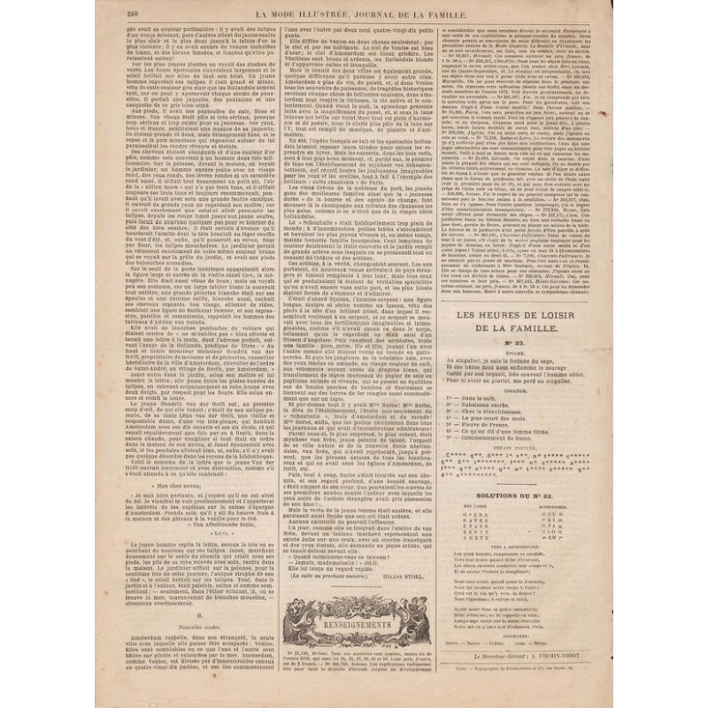 La Mode illustrée , published from 1860 to 1937, is one of the most well-known fashion magazines of the time. It was published between 1860 and 1937.