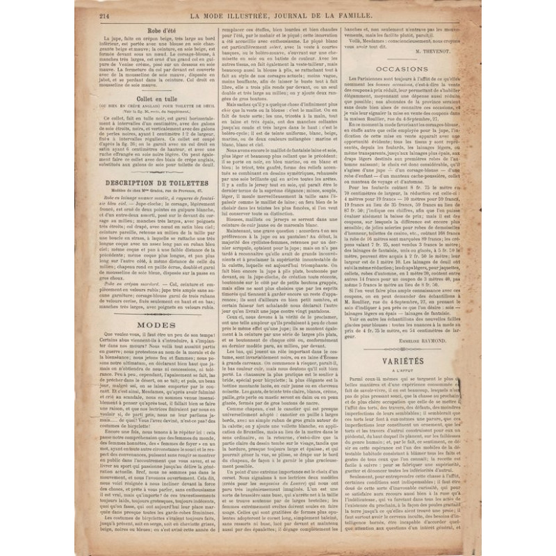 La mode illustrée appeared every week, and was accompanied by a sewing patterns board every fortnight on average.