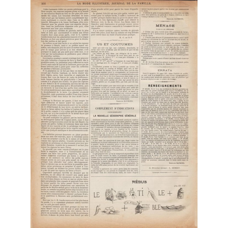 La Mode illustrée , published from 1860 to 1937, is one of the most well-known fashion magazines of the time. It was published between 1860 and 1937.