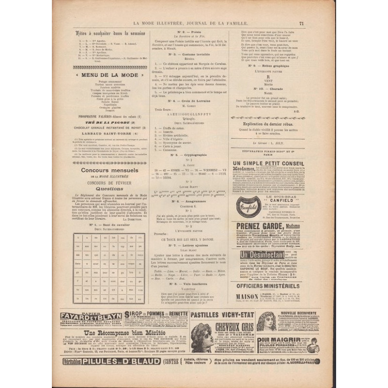 La mode illustrée appeared every week, and was accompanied by a sewing patterns board every fortnight on average.