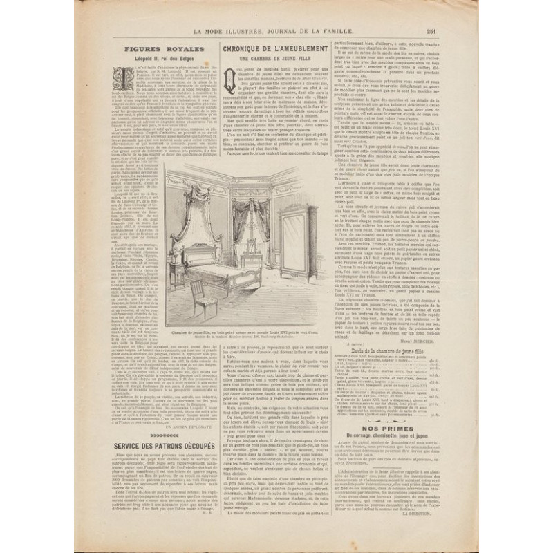La mode illustrée appeared every week, and was accompanied by a sewing patterns board every fortnight on average.
