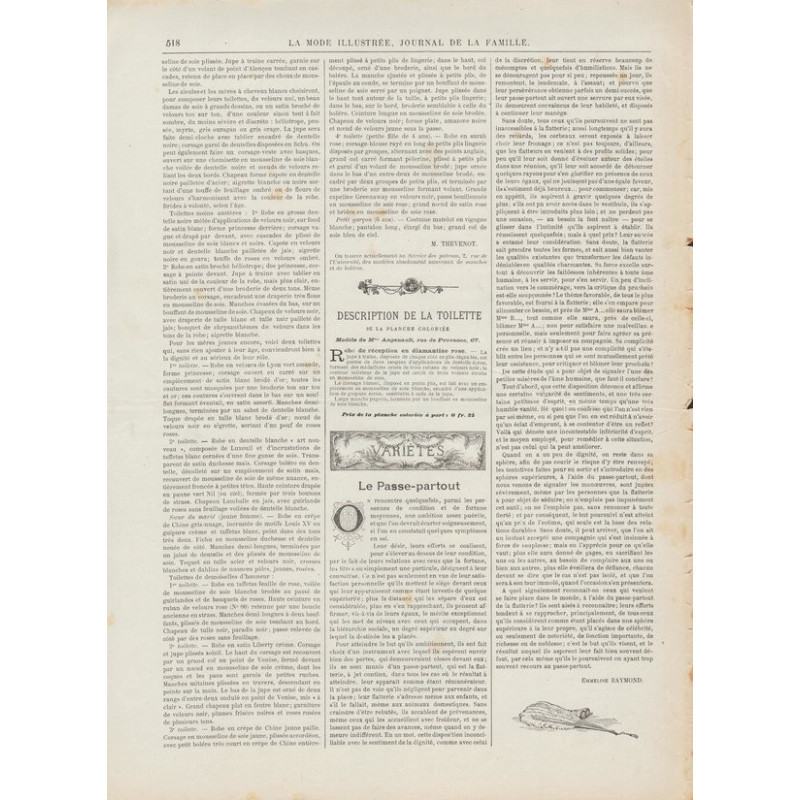 La Mode illustrée , published from 1860 to 1937, is one of the most well-known fashion magazines of the time. It was published between 1860 and 1937.