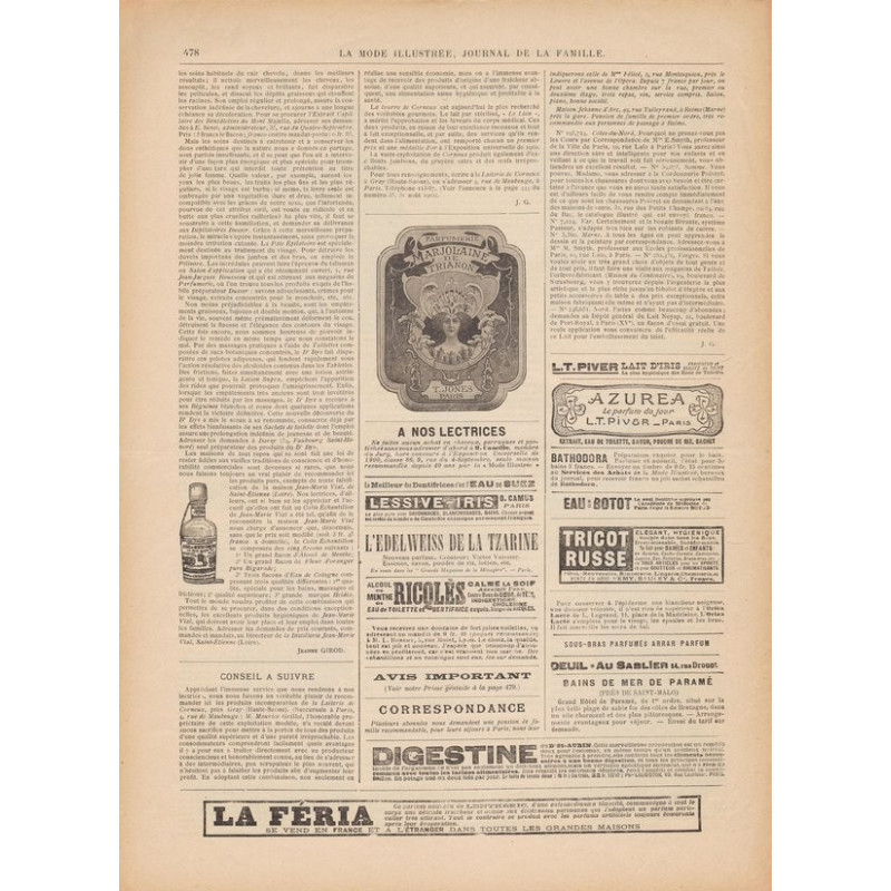La mode illustrée appeared every week, and was accompanied by a sewing patterns board every fortnight on average.
