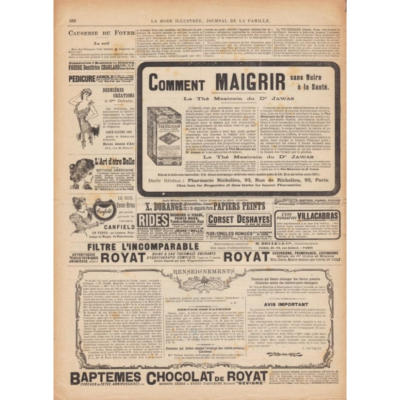 La mode illustrée appeared every week, and was accompanied by a sewing patterns board every fortnight on average.