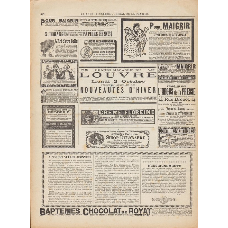 La mode illustrée appeared every week, and was accompanied by a sewing patterns board every fortnight on average.