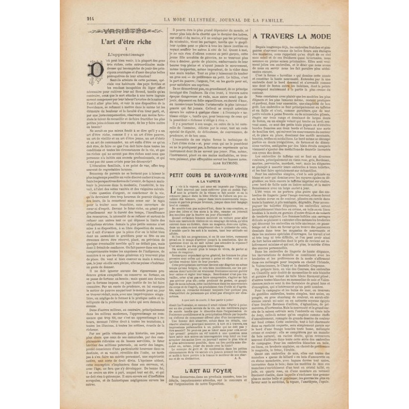 La Mode illustrée , published from 1860 to 1937, is one of the most well-known fashion magazines of the time. It was published between 1860 and 1937.