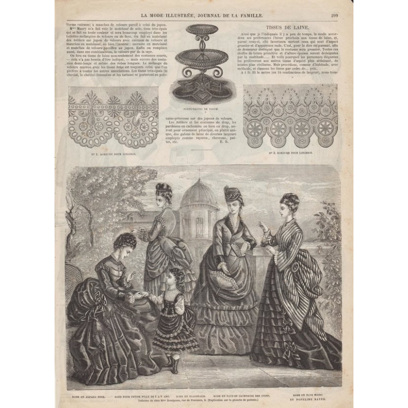 La Mode illustrée , published from 1860 to 1937, is one of the most well-known fashion magazines of the time. It was published between 1860 and 1937.