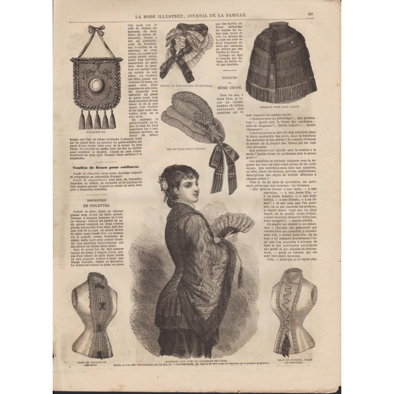 La Mode illustrée , published from 1860 to 1937, is one of the most well-known fashion magazines of the time. It was published between 1860 and 1937.