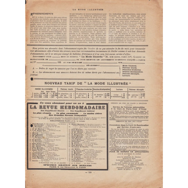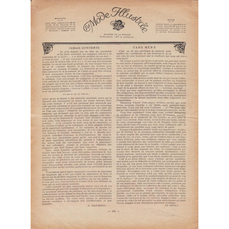 La mode illustrée appeared every week, and was accompanied by a sewing patterns board every fortnight on average.