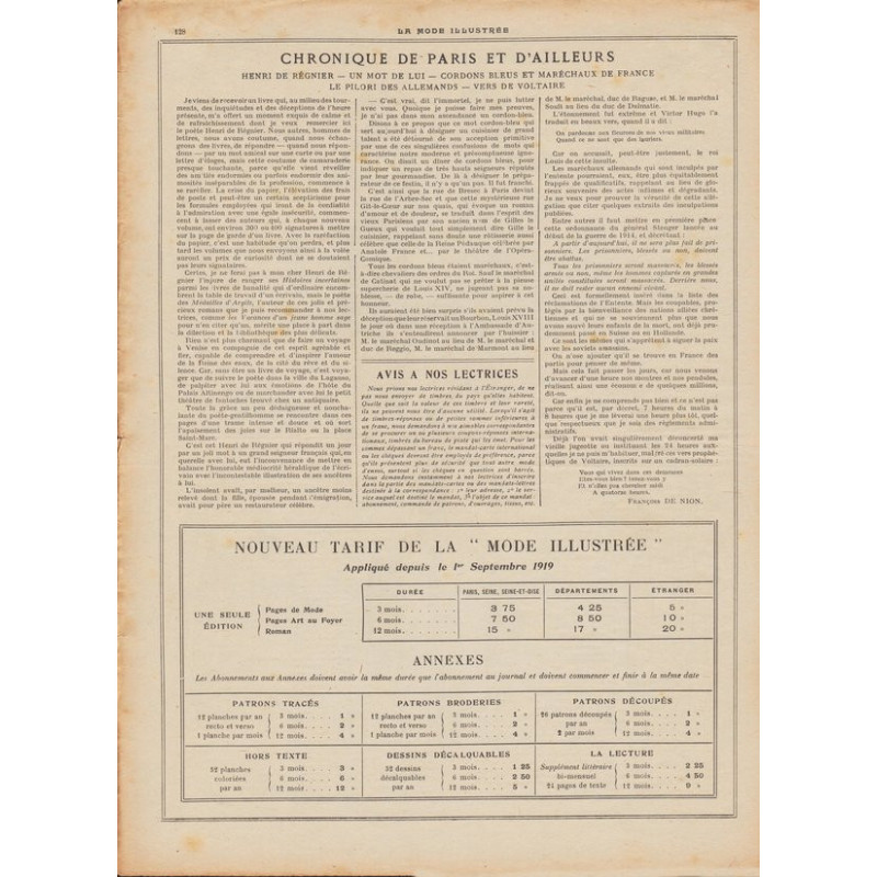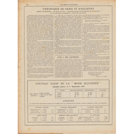 La mode illustrée appeared every week, and was accompanied by a sewing patterns board every fortnight on average.