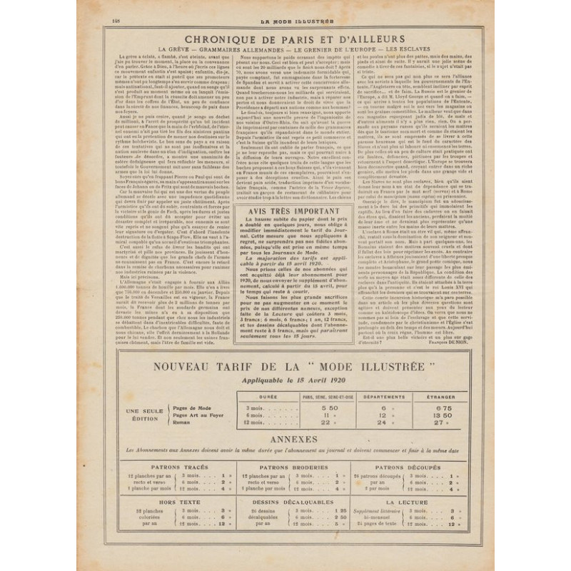 La mode illustrée appeared every week, and was accompanied by a sewing patterns board every fortnight on average.