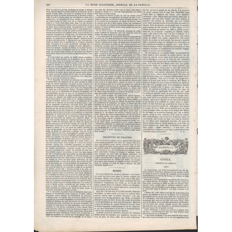 La Mode illustrée , published from 1860 to 1937, is one of the most well-known fashion magazines of the time. It was published between 1860 and 1937.