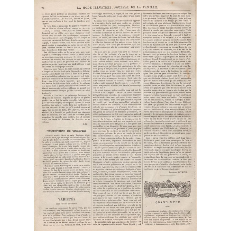 La Mode illustrée , published from 1860 to 1937, is one of the most well-known fashion magazines of the time. It was published between 1860 and 1937.