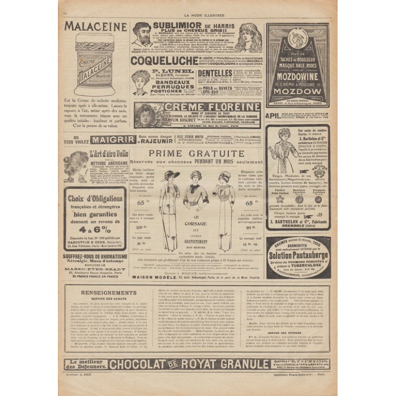 La mode illustrée appeared every week, and was accompanied by a sewing patterns board every fortnight on average.
