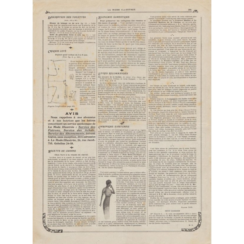 Each magazine featured dresses, lingerie, corsets, but also children’s clothing or doll clothes, with beautiful prints and explanations of the models.