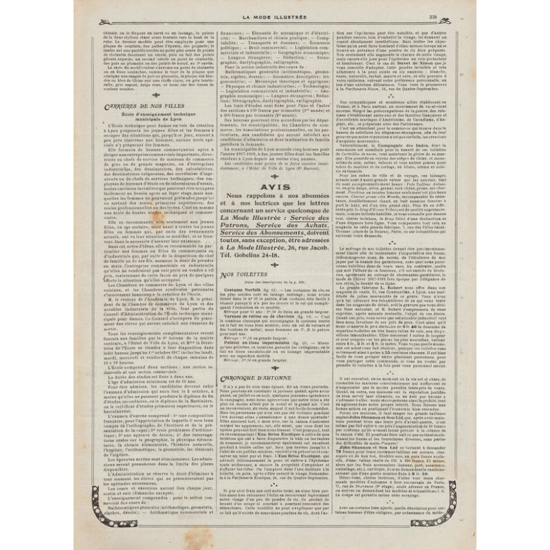 La mode illustrée appeared every week, and was accompanied by a sewing patterns board every fortnight on average.