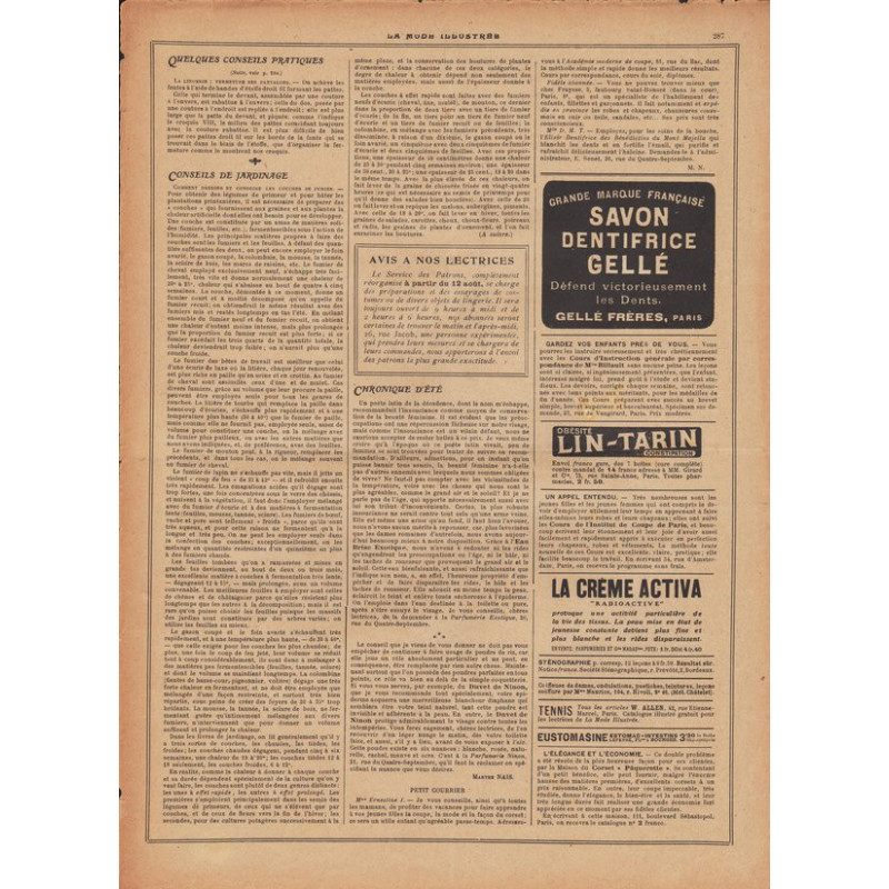 La mode illustrée appeared every week, and was accompanied by a sewing patterns board every fortnight on average.