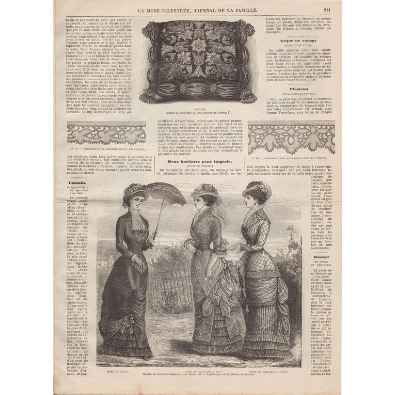 La Mode illustrée , published from 1860 to 1937, is one of the most well-known fashion magazines of the time. It was published between 1860 and 1937.