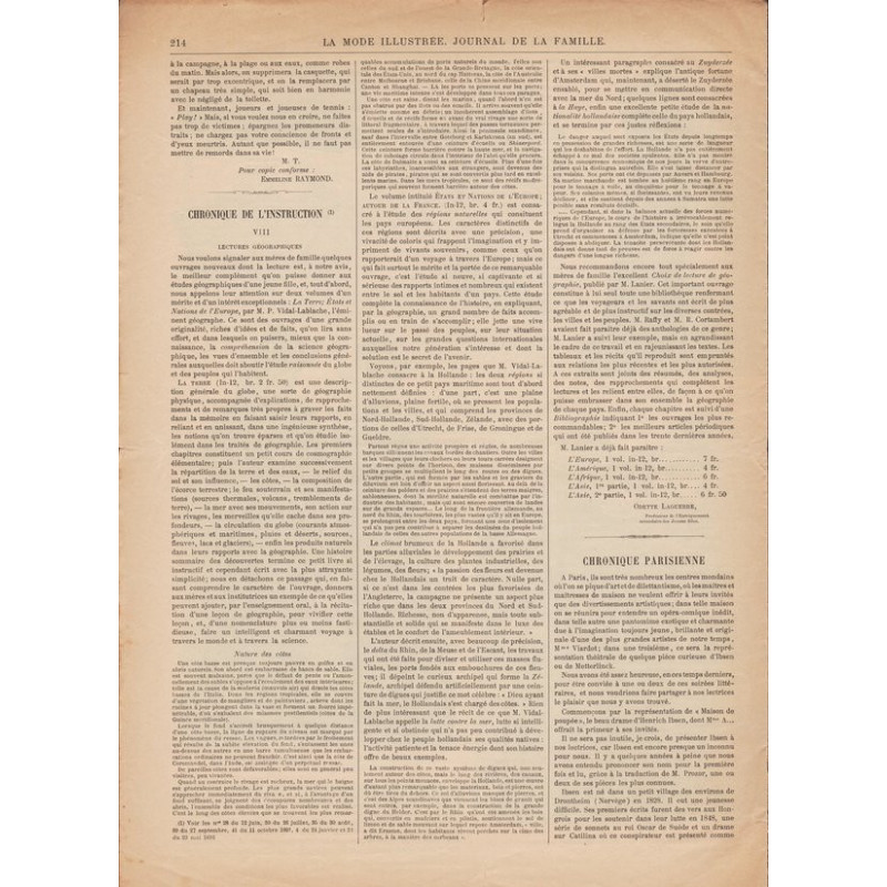 La Mode illustrée , published from 1860 to 1937, is one of the most well-known fashion magazines of the time. It was published between 1860 and 1937.