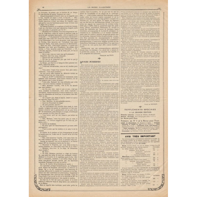 La mode illustrée appeared every week, and was accompanied by a sewing patterns board every fortnight on average.