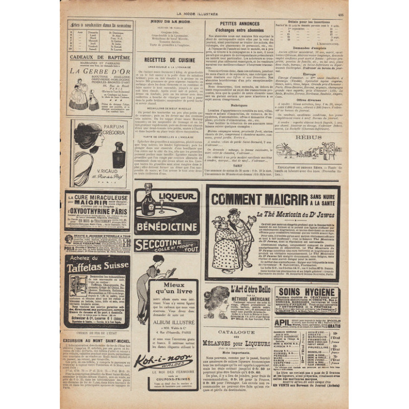 La mode illustrée appeared every week, and was accompanied by a sewing patterns board every fortnight on average.
