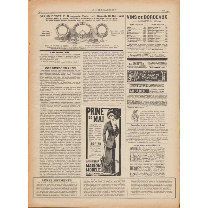 La mode illustrée appeared every week, and was accompanied by a sewing patterns board every fortnight on average.