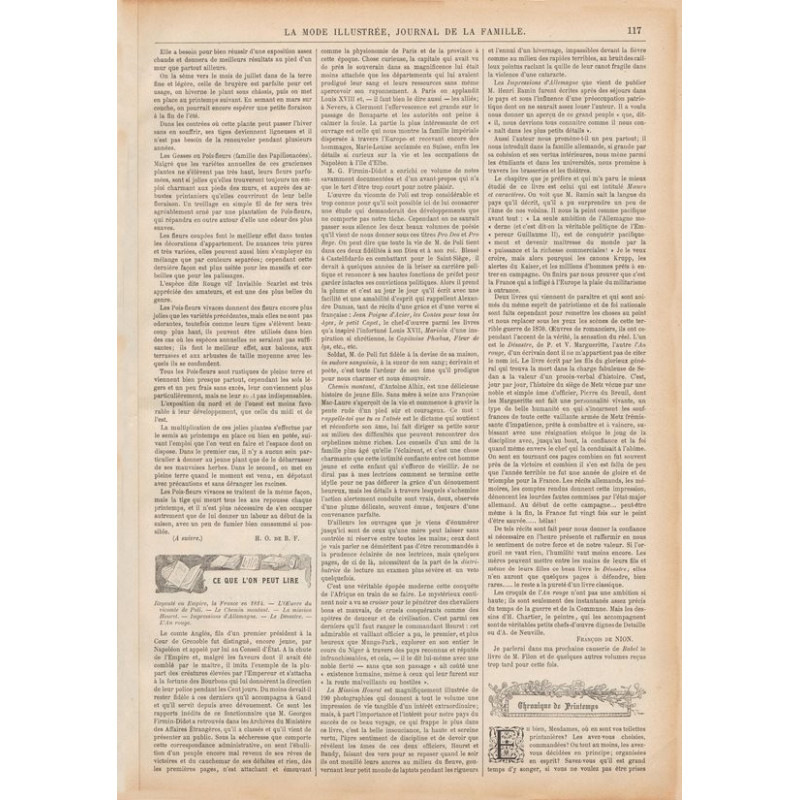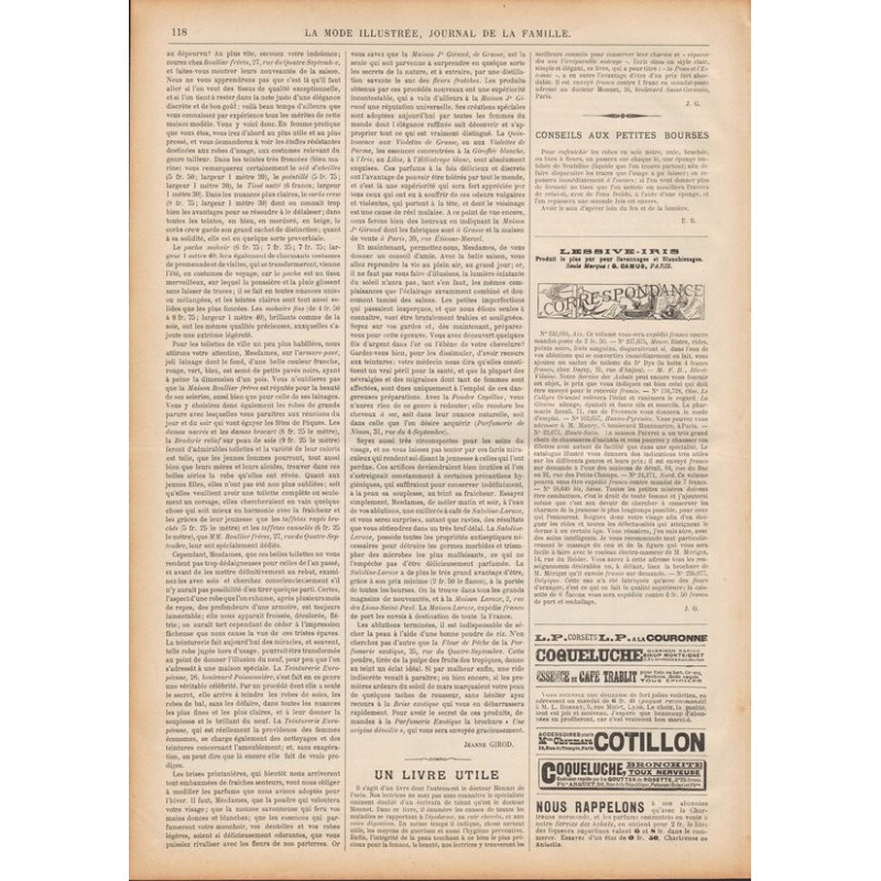 La Mode illustrée , published from 1860 to 1937, is one of the most well-known fashion magazines of the time. It was published between 1860 and 1937.