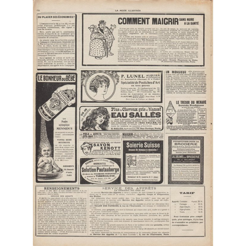 La mode illustrée appeared every week, and was accompanied by a sewing patterns board every fortnight on average.