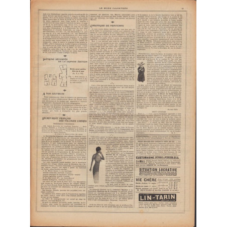 La mode illustrée appeared every week, and was accompanied by a sewing patterns board every fortnight on average.