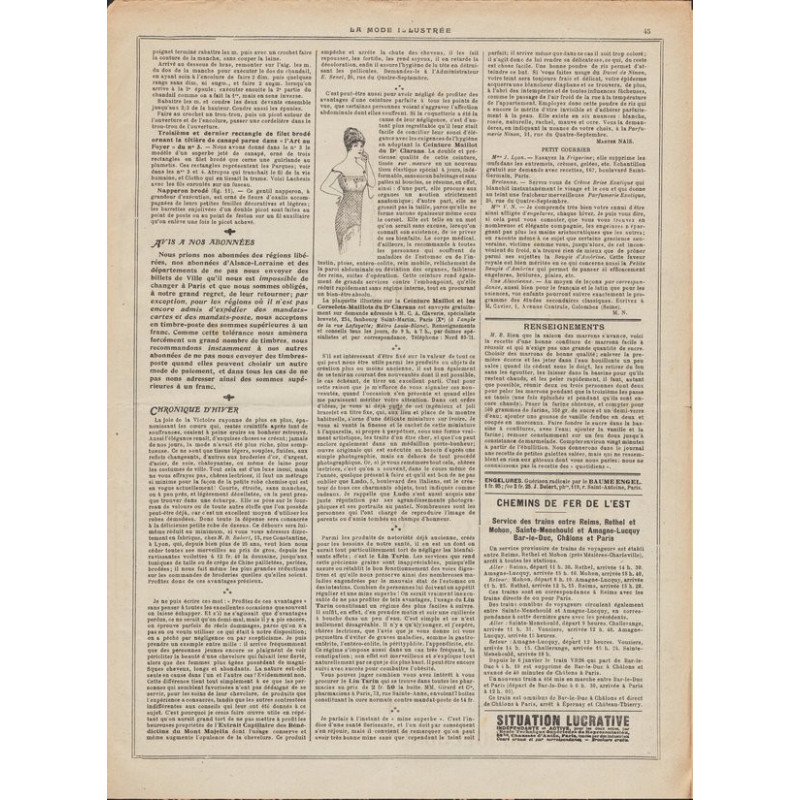 La mode illustrée appeared every week, and was accompanied by a sewing patterns board every fortnight on average.