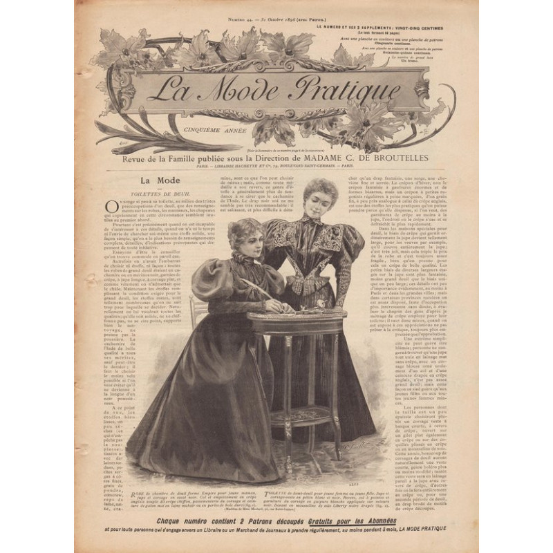 La mode pratique 1896 N°44Complete fashion magazine of 12 pagesDownload PDF file for printing