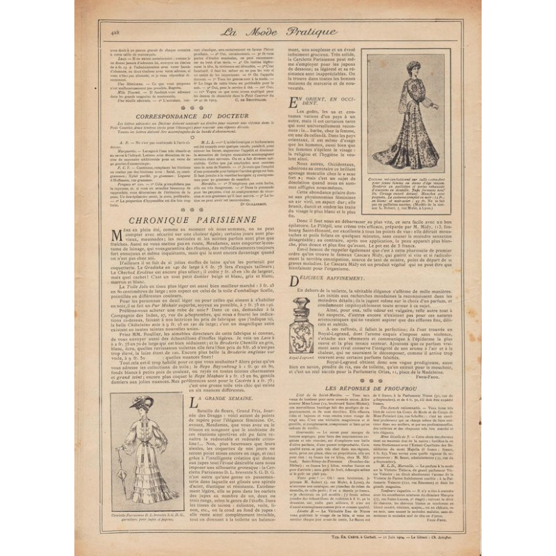 La mode pratique 1904 N°24Complete fashion magazine of 12 pagesDownload PDF file for printing