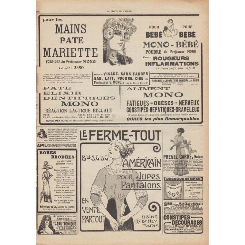 La mode illustrée appeared every week, and was accompanied by a sewing patterns board every fortnight on average.