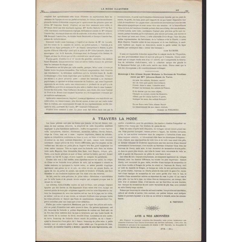 La Mode illustrée , published from 1860 to 1937, is one of the most well-known fashion magazines of the time. It was published between 1860 and 1937.