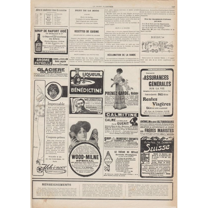 La mode illustrée appeared every week, and was accompanied by a sewing patterns board every fortnight on average.