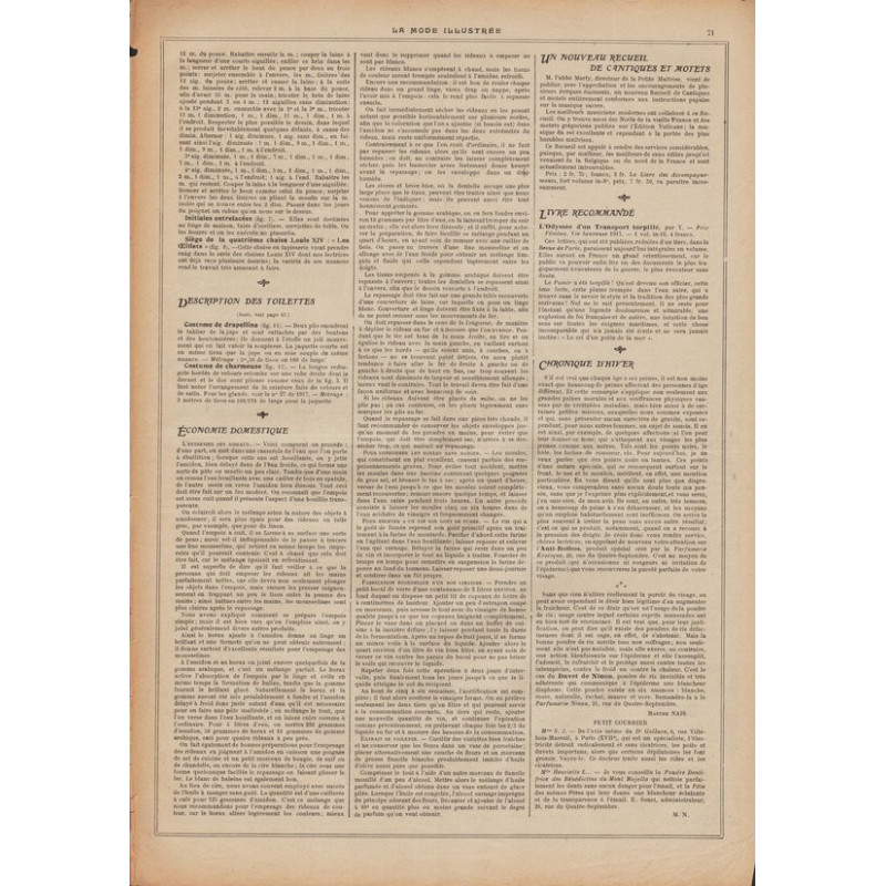 La Mode illustrée , published from 1860 to 1937, is one of the most well-known fashion magazines of the time. It was published between 1860 and 1937.