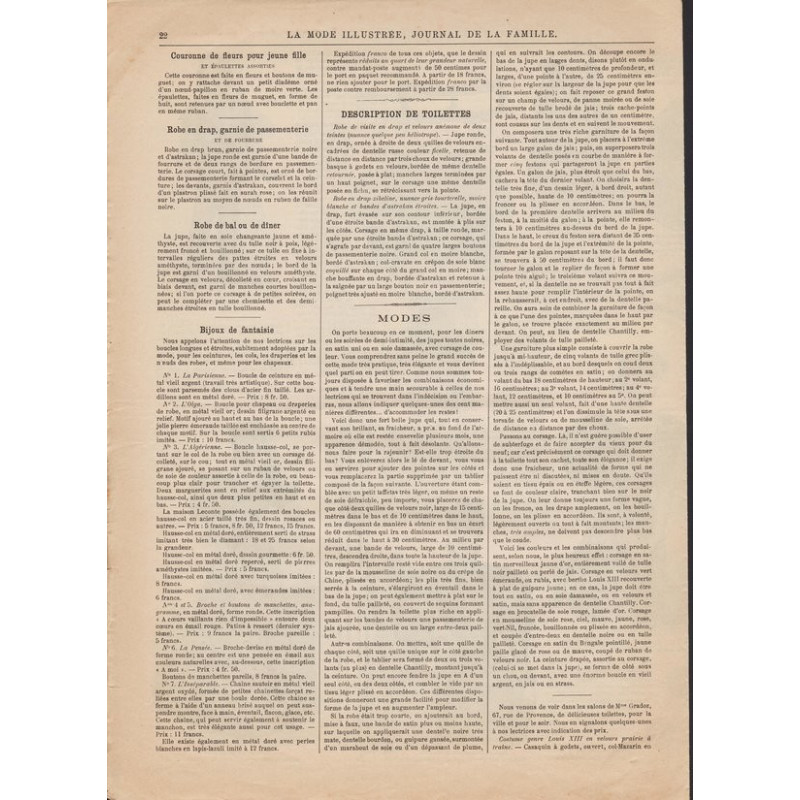 La Mode illustrée , published from 1860 to 1937, is one of the most well-known fashion magazines of the time. It was published between 1860 and 1937.