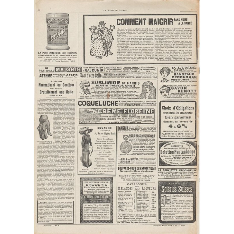 La mode illustrée appeared every week, and was accompanied by a sewing patterns board every fortnight on average.