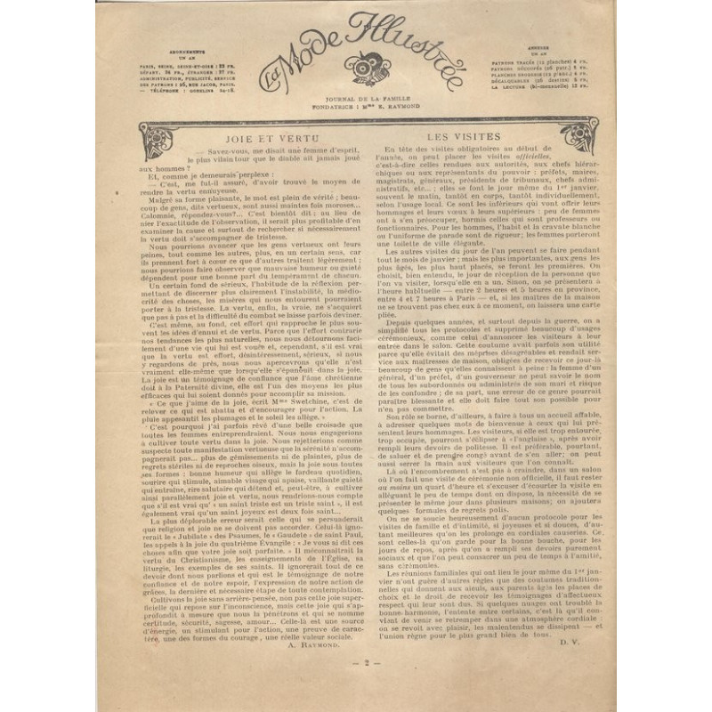 La mode illustrée appeared every week, and was accompanied by a sewing patterns board every fortnight on average.