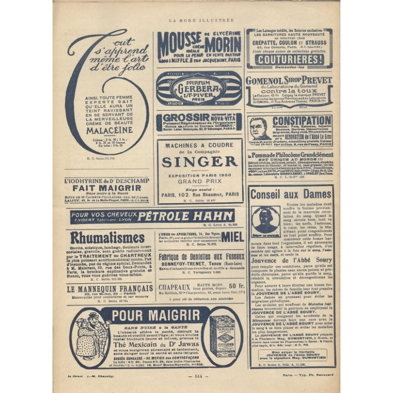 La mode illustrée appeared every week, and was accompanied by a sewing patterns board every fortnight on average.