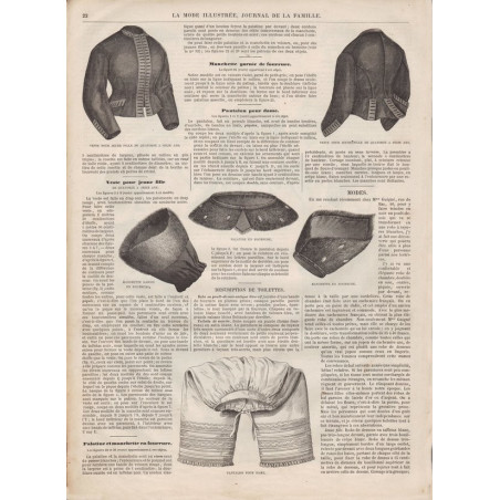 Chaque magazine présentait des modèles de robes , de lingerie , de corsets , mais aussi des vêtements d’enfants ou habits de poupées , avec de magnifiques gravures et les explications des modèles .