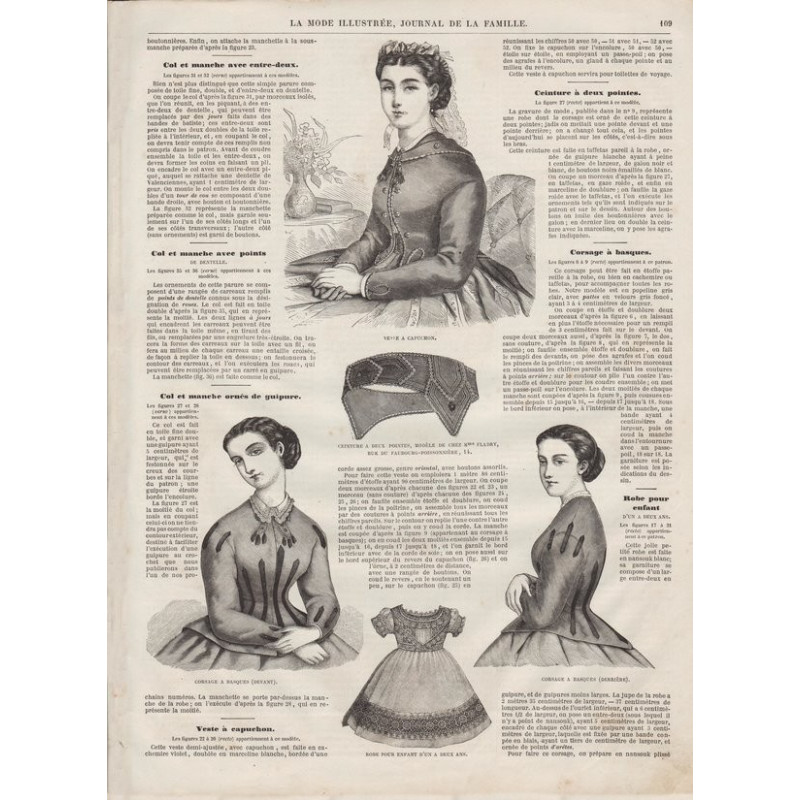 Chaque magazine présentait des modèles de robes , de lingerie , de corsets , mais aussi des vêtements d’enfants ou habits de poupées , avec de magnifiques gravures et les explications des modèles .