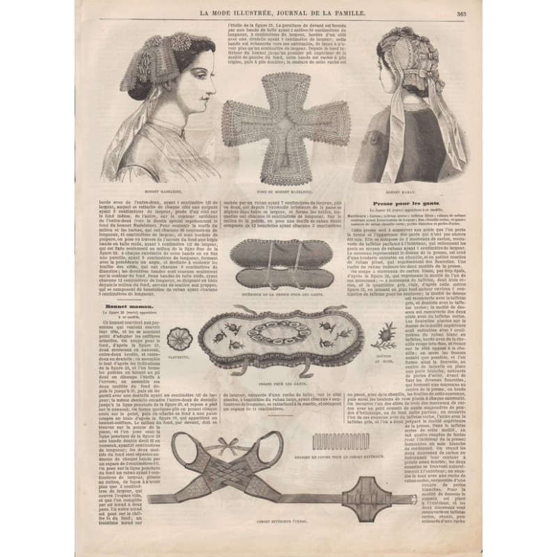 Chaque magazine présentait des modèles de robes , de lingerie , de corsets , mais aussi des vêtements d’enfants ou habits de poupées , avec de magnifiques gravures et les explications des modèles .