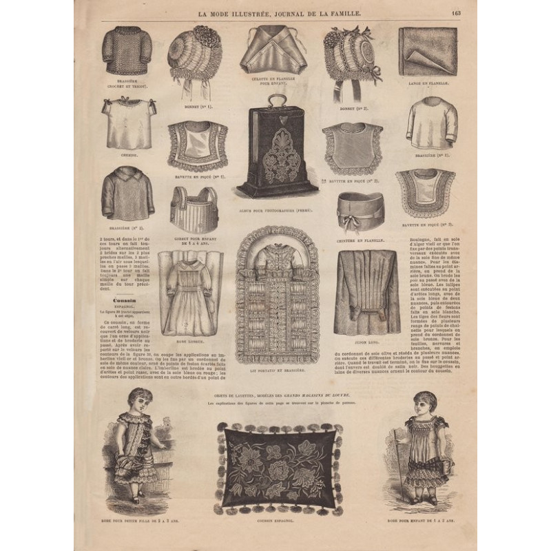 Chaque magazine présentait des modèles de robes , de lingerie , de corsets , mais aussi des vêtements d’enfants ou habits de poupées , avec de magnifiques gravures et les explications des modèles .