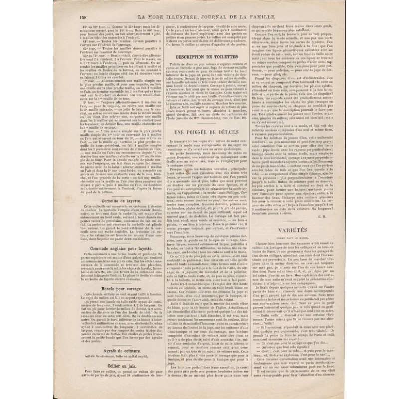Chaque magazine présentait des modèles de robes , de lingerie , de corsets , mais aussi des vêtements d’enfants ou habits de poupées , avec de magnifiques gravures et les explications des modèles .
