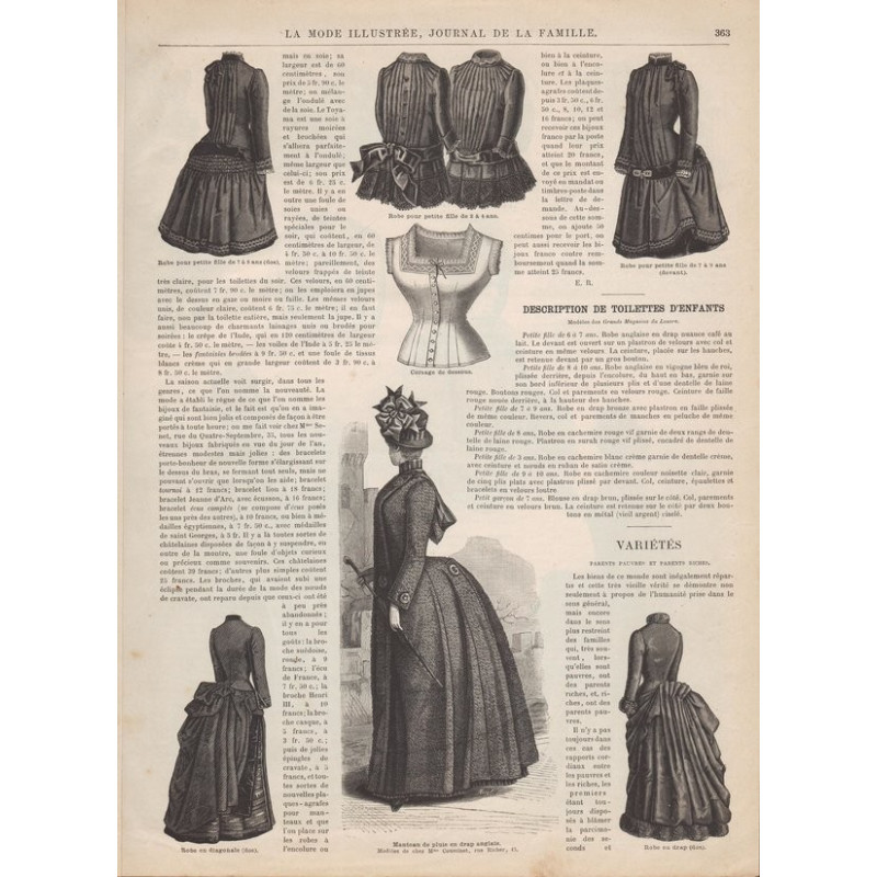 Chaque magazine présentait des modèles de robes , de lingerie , de corsets , mais aussi des vêtements d’enfants ou habits de poupées , avec de magnifiques gravures et les explications des modèles .
