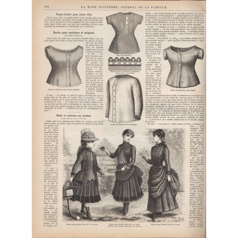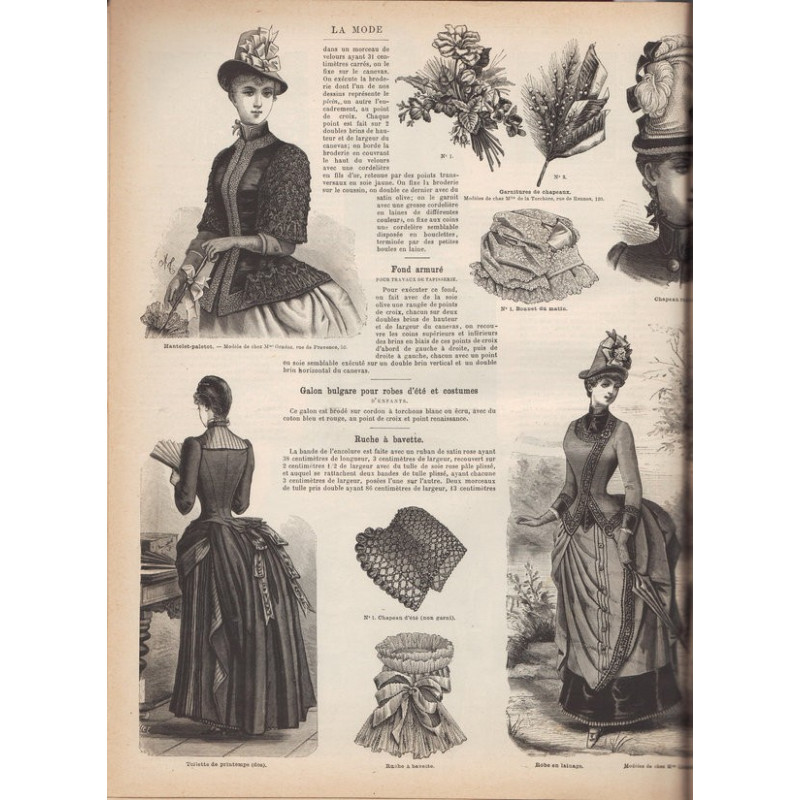 Chaque magazine présentait des modèles de robes , de lingerie , de corsets , mais aussi des vêtements d’enfants ou habits de poupées , avec de magnifiques gravures et les explications des modèles .