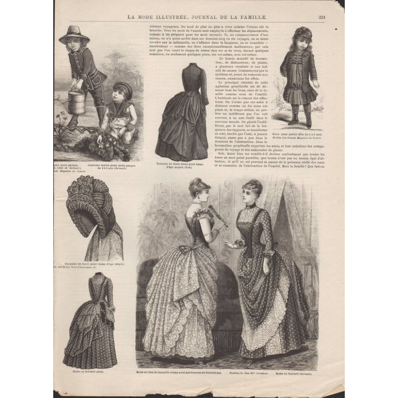 Chaque magazine présentait des modèles de robes , de lingerie , de corsets , mais aussi des vêtements d’enfants ou habits de poupées , avec de magnifiques gravures et les explications des modèles .