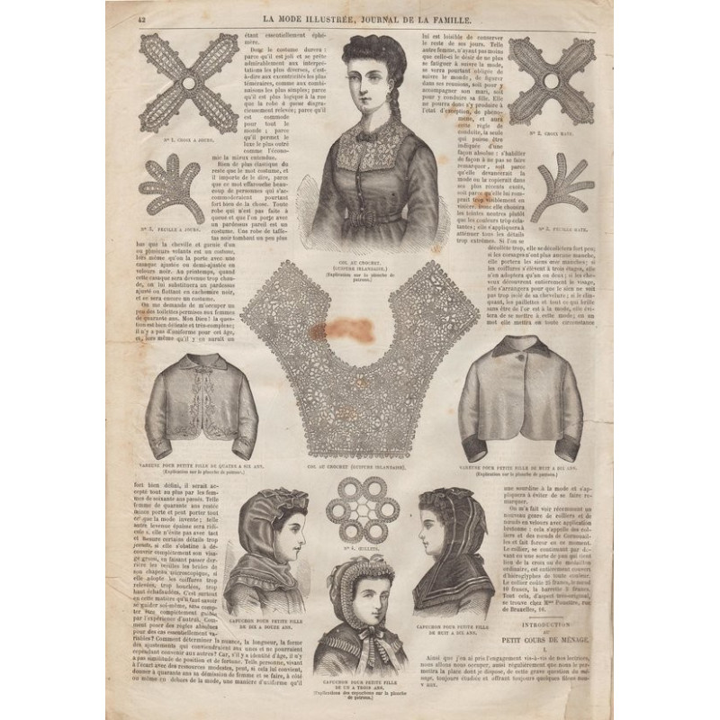 Chaque magazine présentait des modèles de robes , de lingerie , de corsets , mais aussi des vêtements d’enfants ou habits de poupées , avec de magnifiques gravures et les explications des modèles .