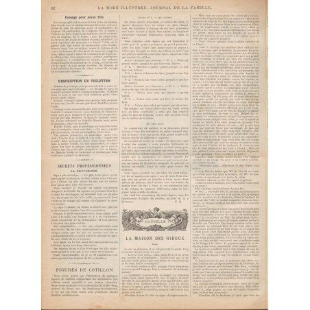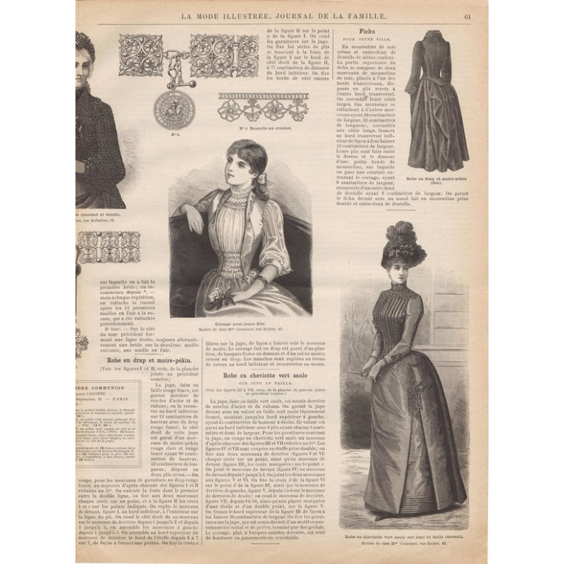 Chaque magazine présentait des modèles de robes , de lingerie , de corsets , mais aussi des vêtements d’enfants ou habits de poupées , avec de magnifiques gravures et les explications des modèles .